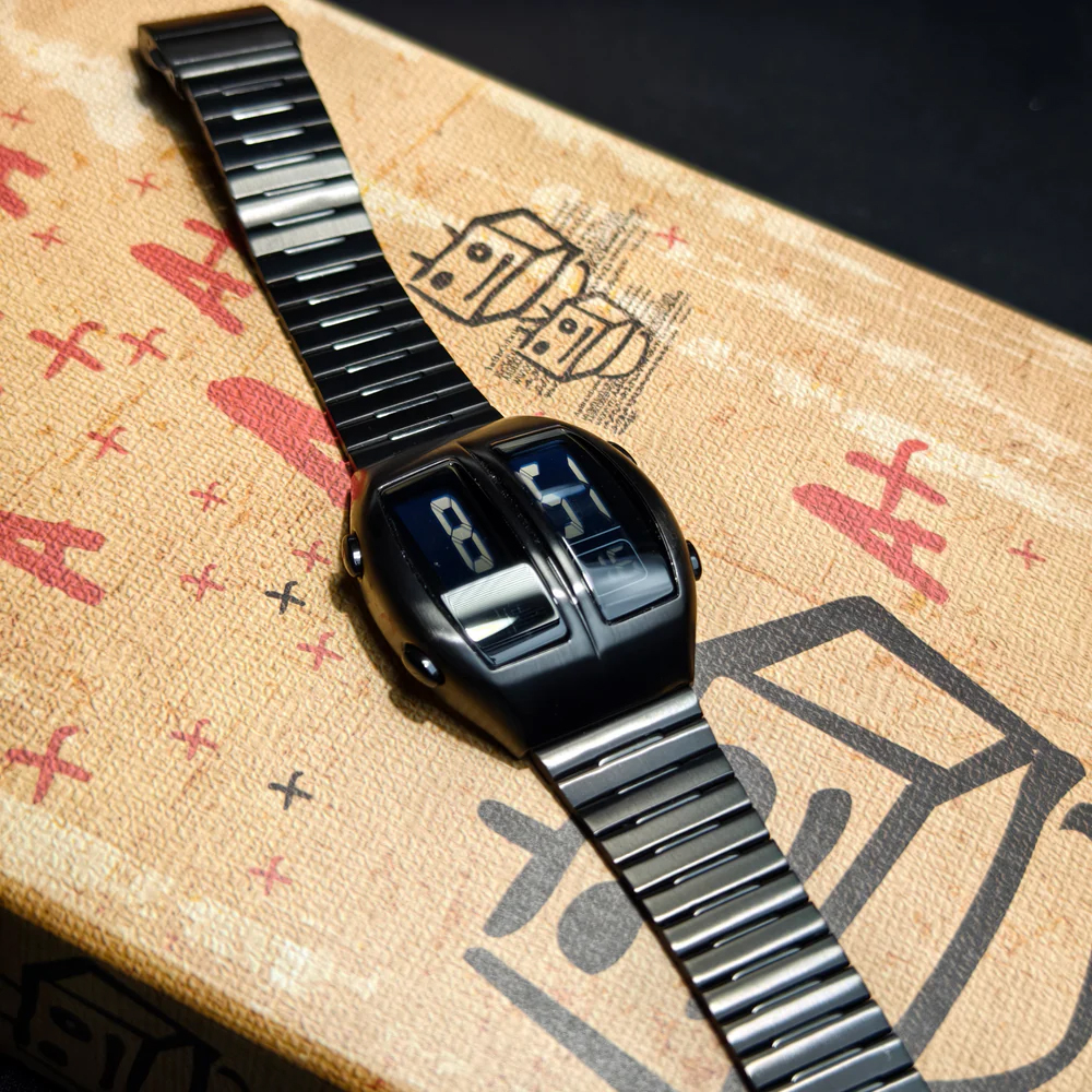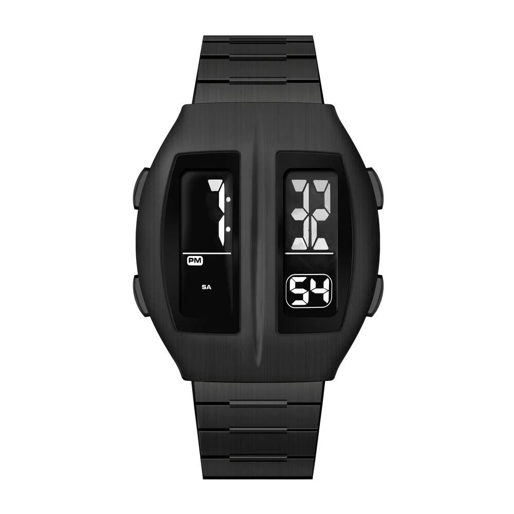 Benlydesign |Flip型 銀色款 兩視窗翻轉 LCD顯示 多功能 不鏽鋼錶帶 電子錶(KR-B)