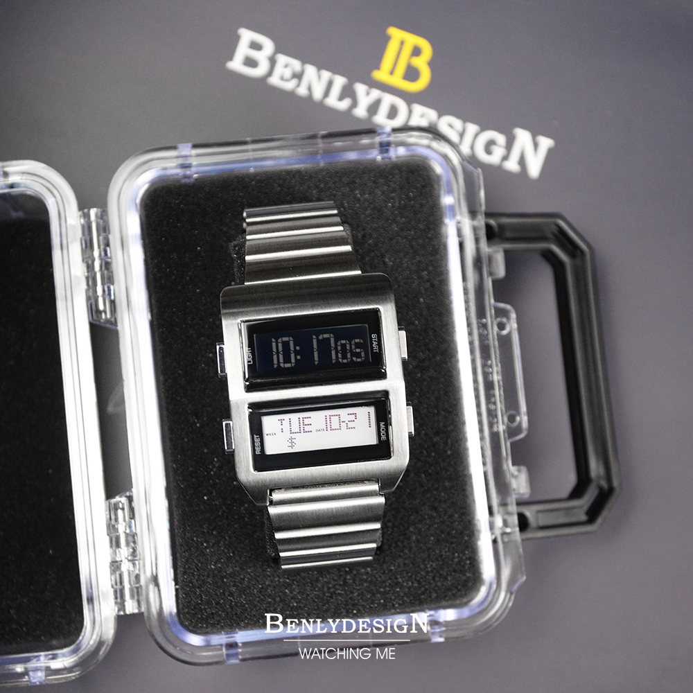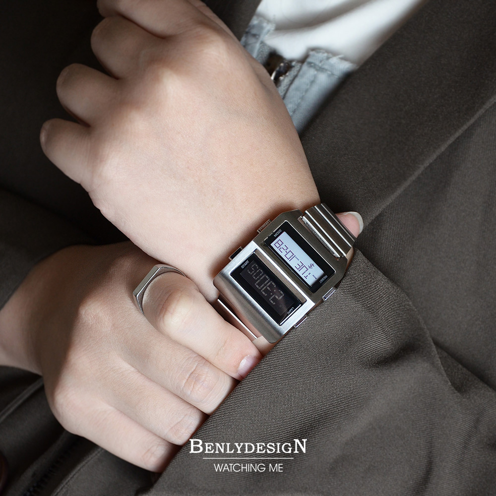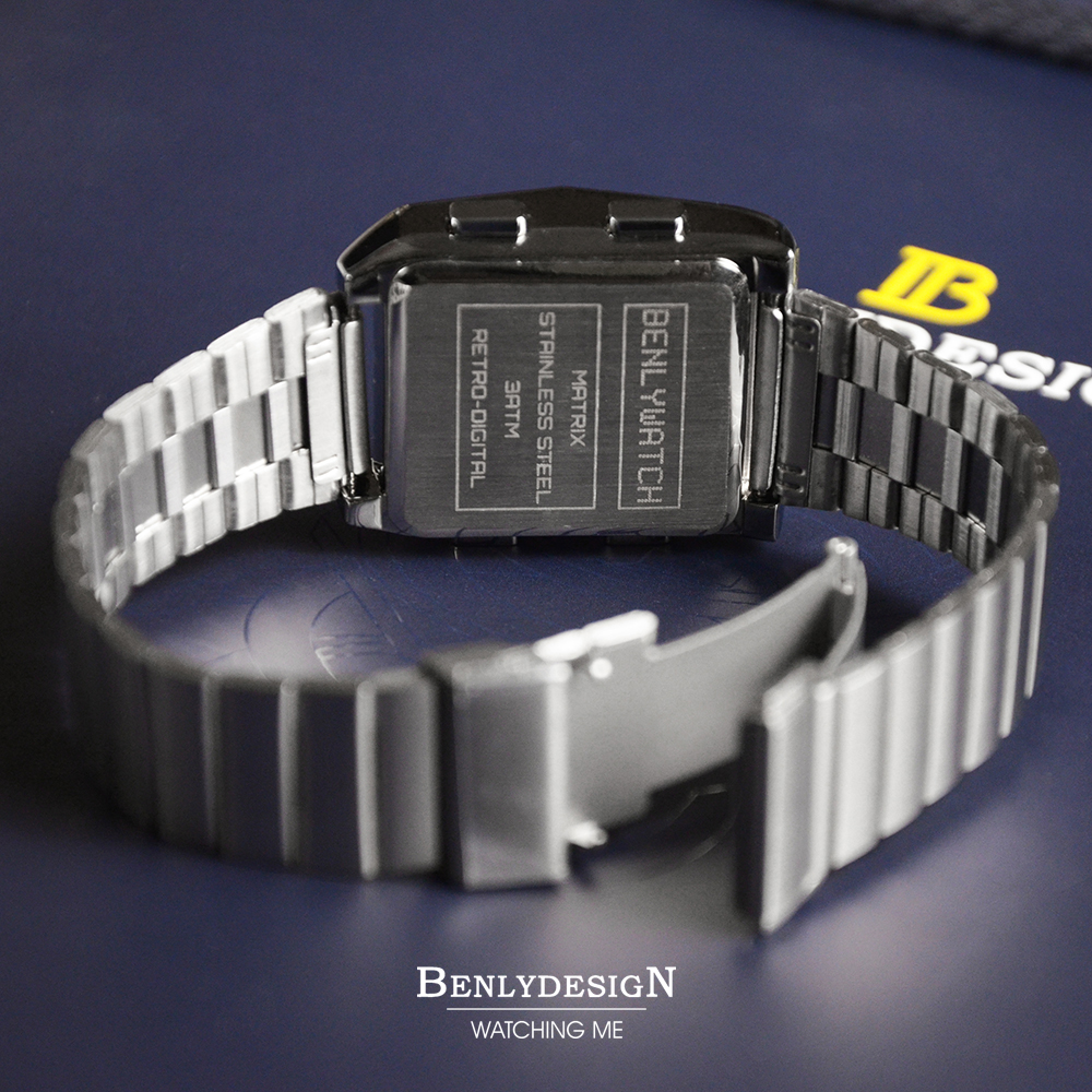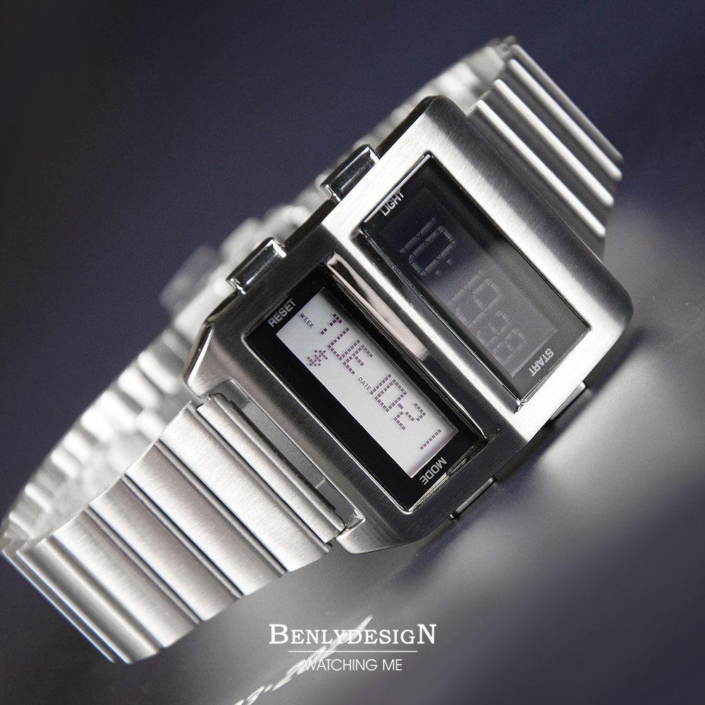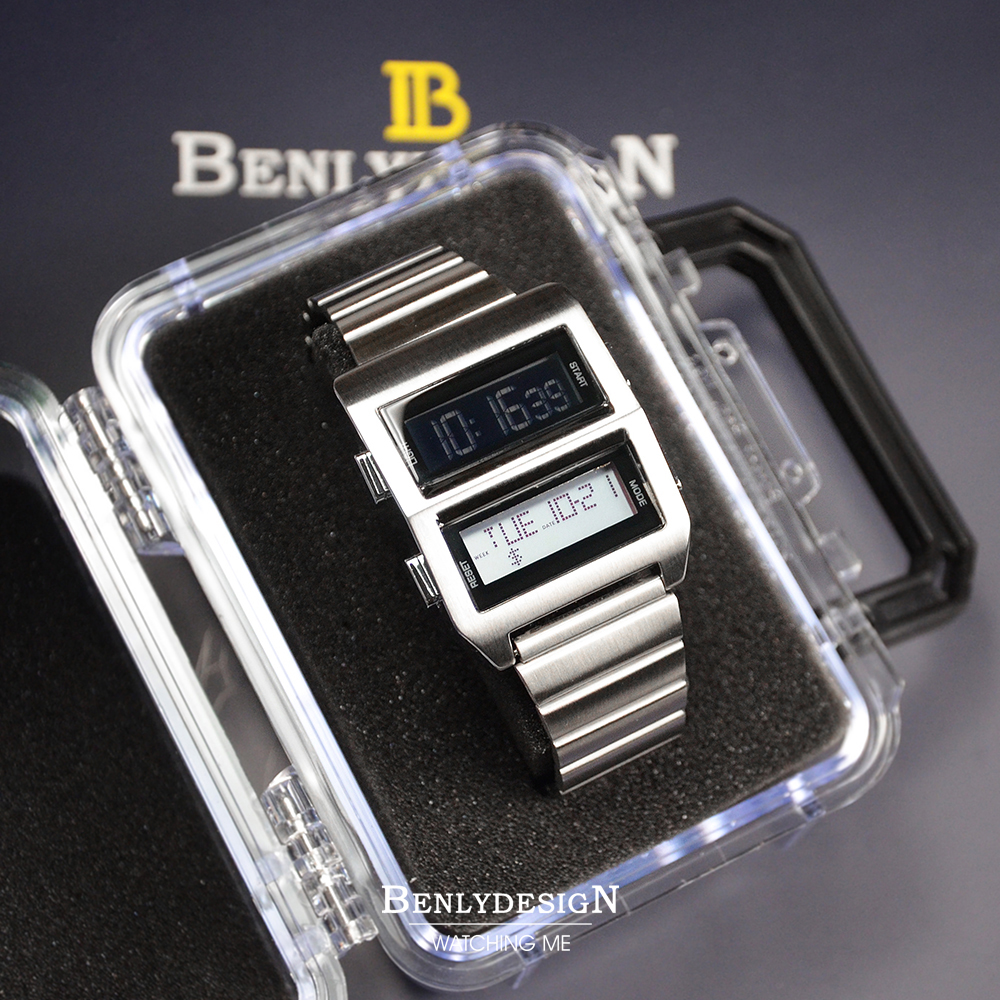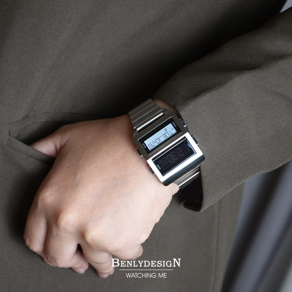 Benlydesign |Matrix型 銀色款 兩視窗 LCD顯示 多功能 不鏽鋼錶帶 電子錶