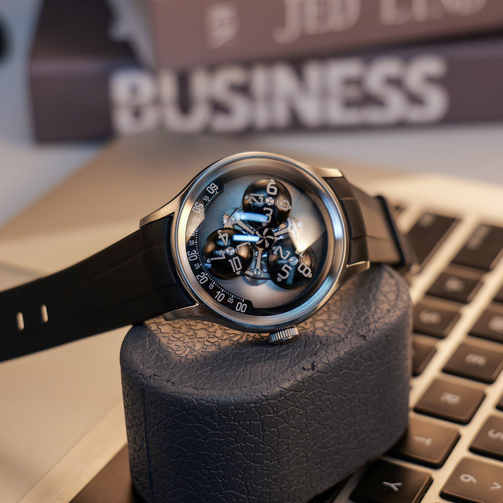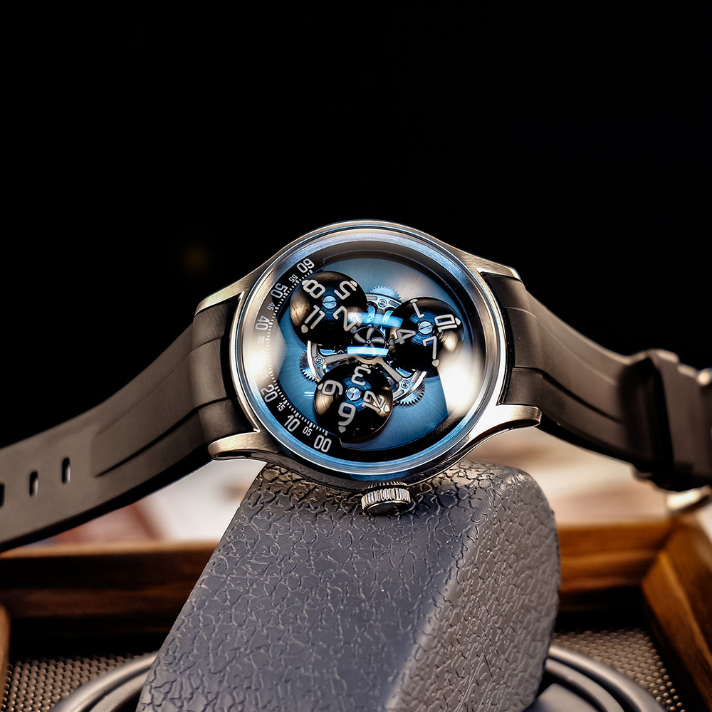 OBLVLO|機械腕錶 黑色橡膠錶帶 夜光 科技感 男錶 BLM-TRISOME-PSBR