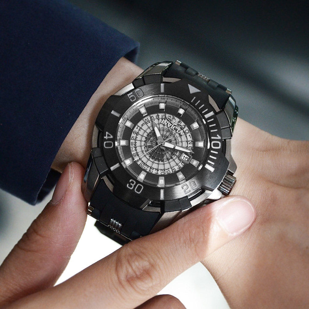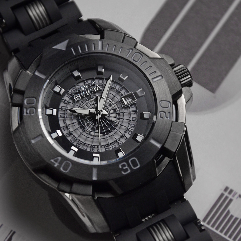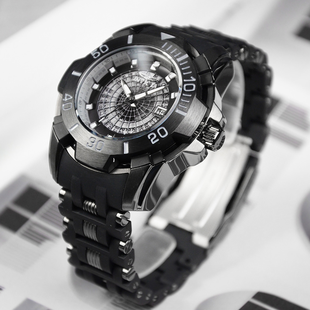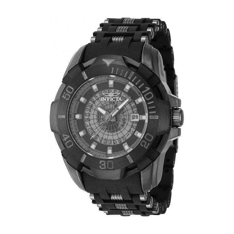 INVICTA | Sea Spider系列 黑色系 蜘蛛網造型錶盤 黑色PU+不鏽鋼拼接錶帶 男錶 (44132)