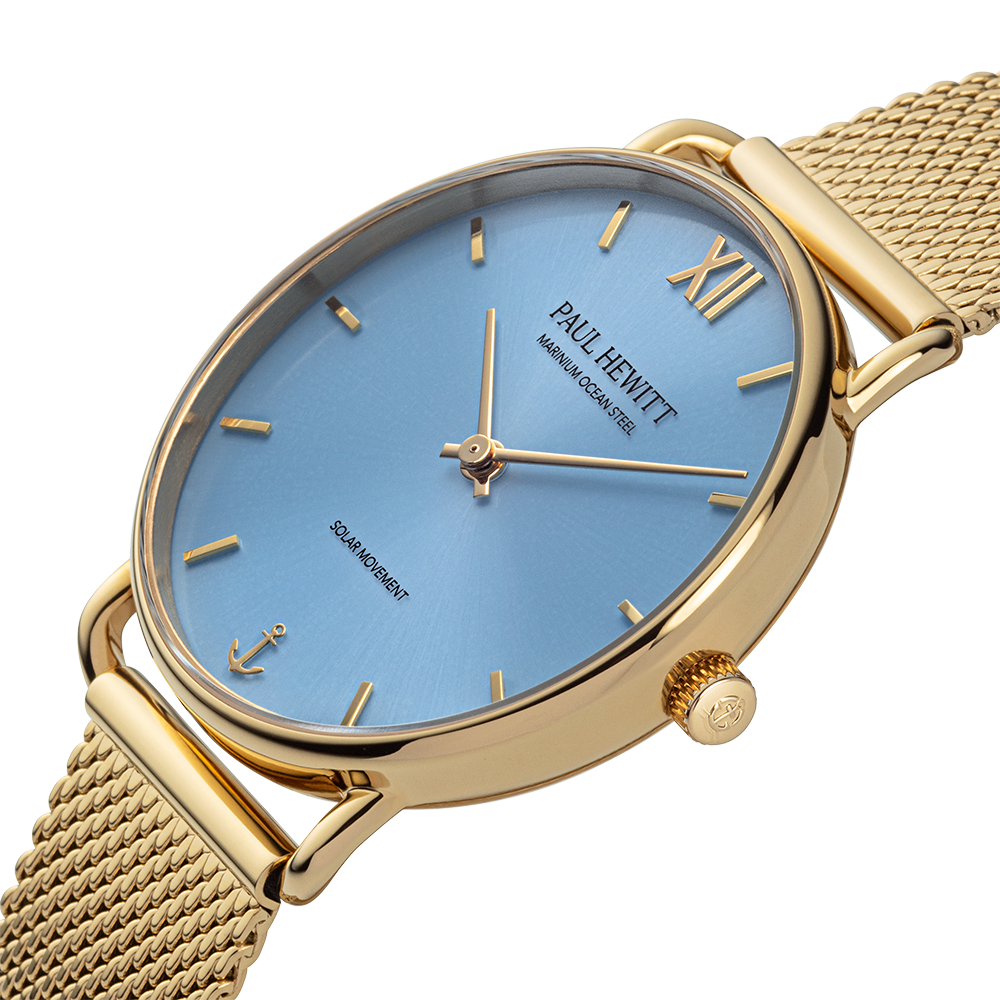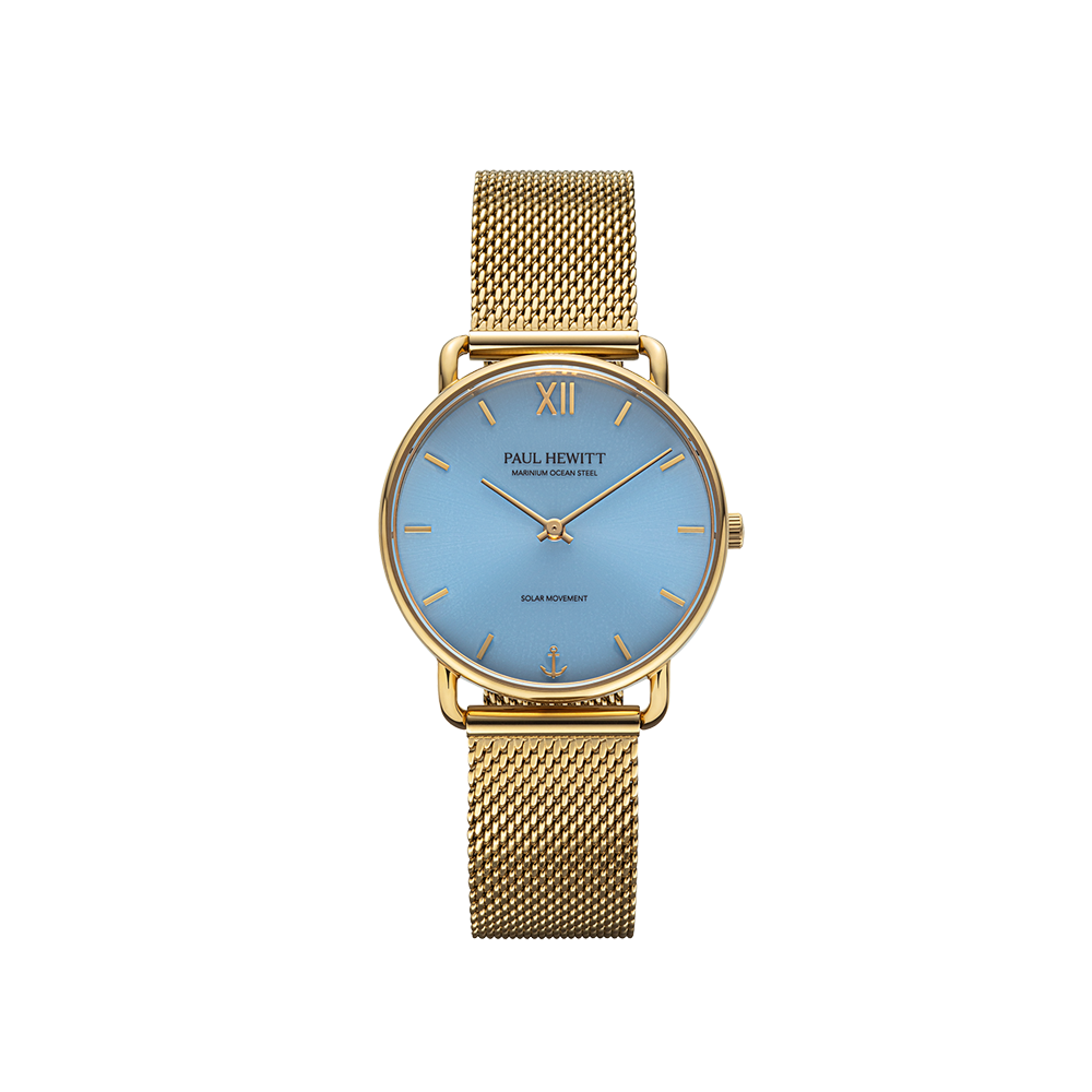 Paul Hewitt |Sailor 金色 藍面 米蘭帶 光動能腕錶(PH-W-0516)