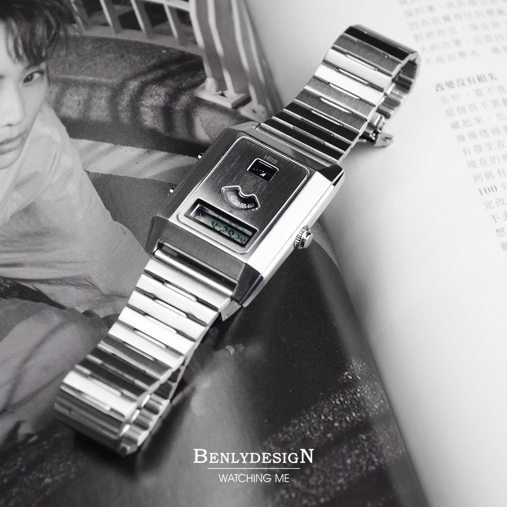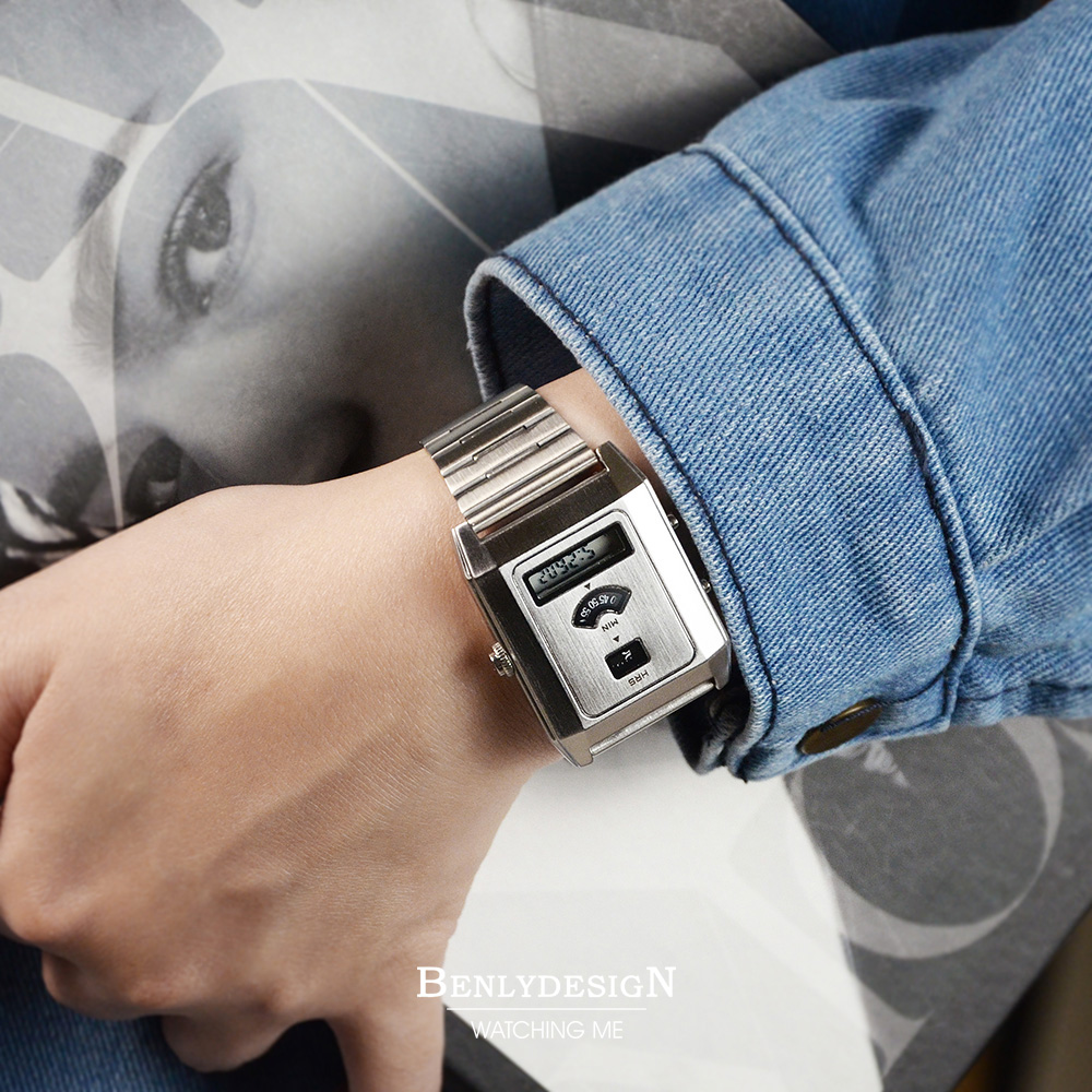 Benlydesign | 科技復古設計 銀色款 LCD顯示 多功能 雙時區 不鏽鋼錶帶 電子錶 (C-0PO-S)