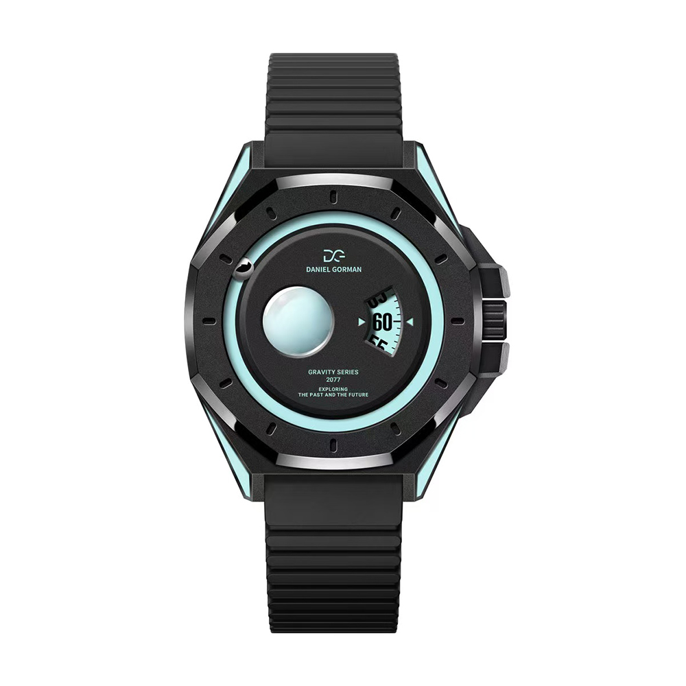 DANIEL GORMAN |萬有引力系列 星球造型 天王星款 水藍色+黑框 黑色矽膠錶帶 (DG0132KU)