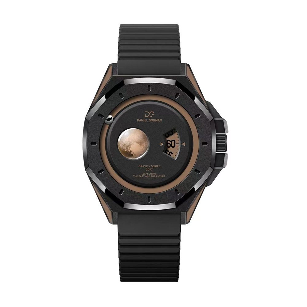 DANIEL GORMAN |萬有引力系列 星球造型 冥王星款 卡其色+黑框 黑色矽膠錶帶 (DG0132KP)