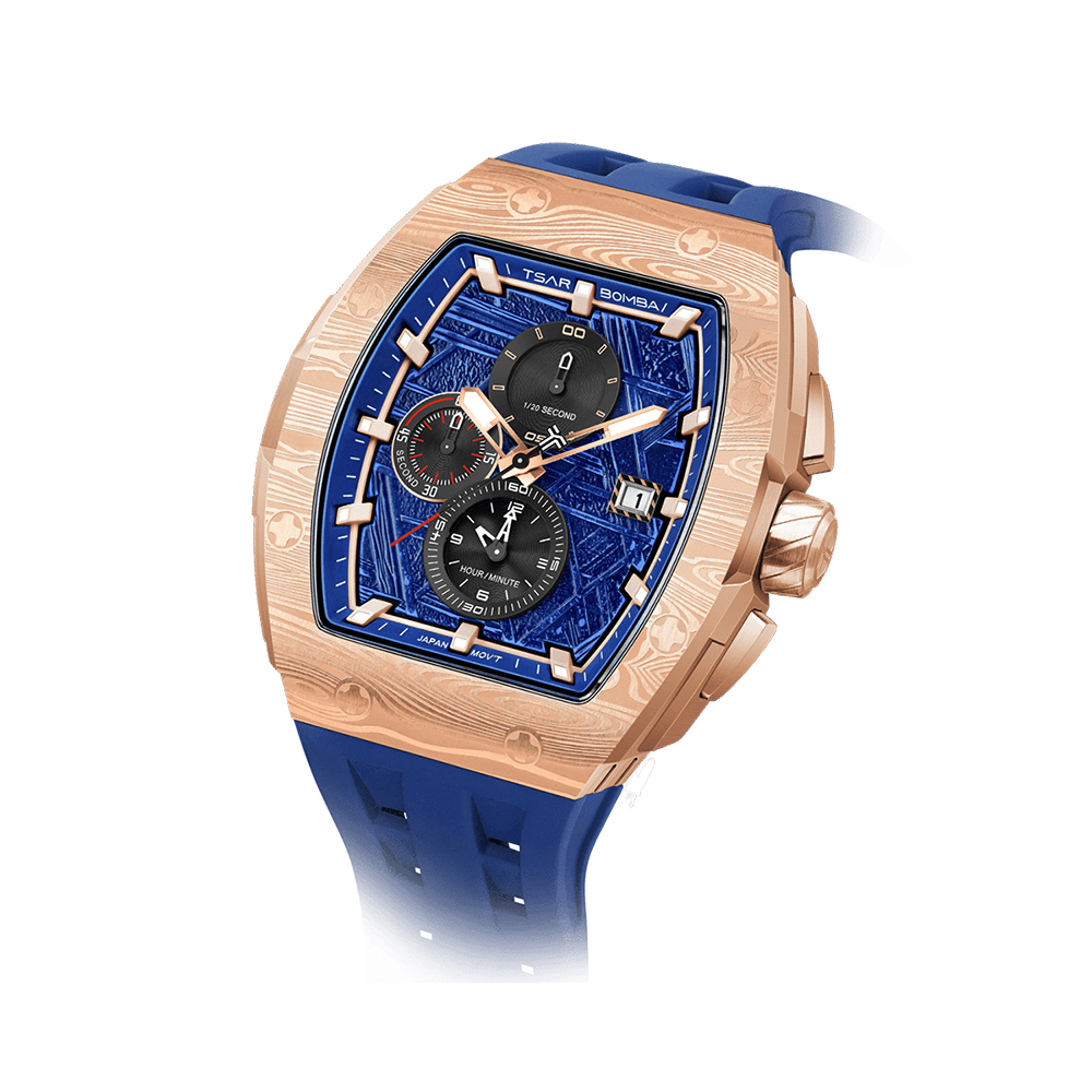 機械公爵 | 元素系列 玫瑰金框 藍色矽膠錶帶 石英錶 (TB8211QII-10)