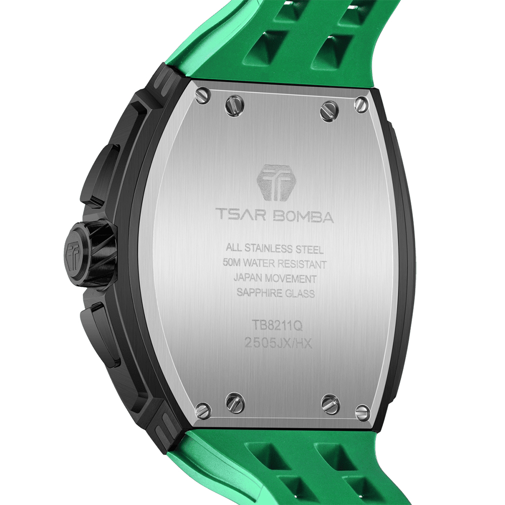 機械公爵 | 元素系列 黑框 綠色矽膠錶帶 石英錶 (TB8211QII-11)