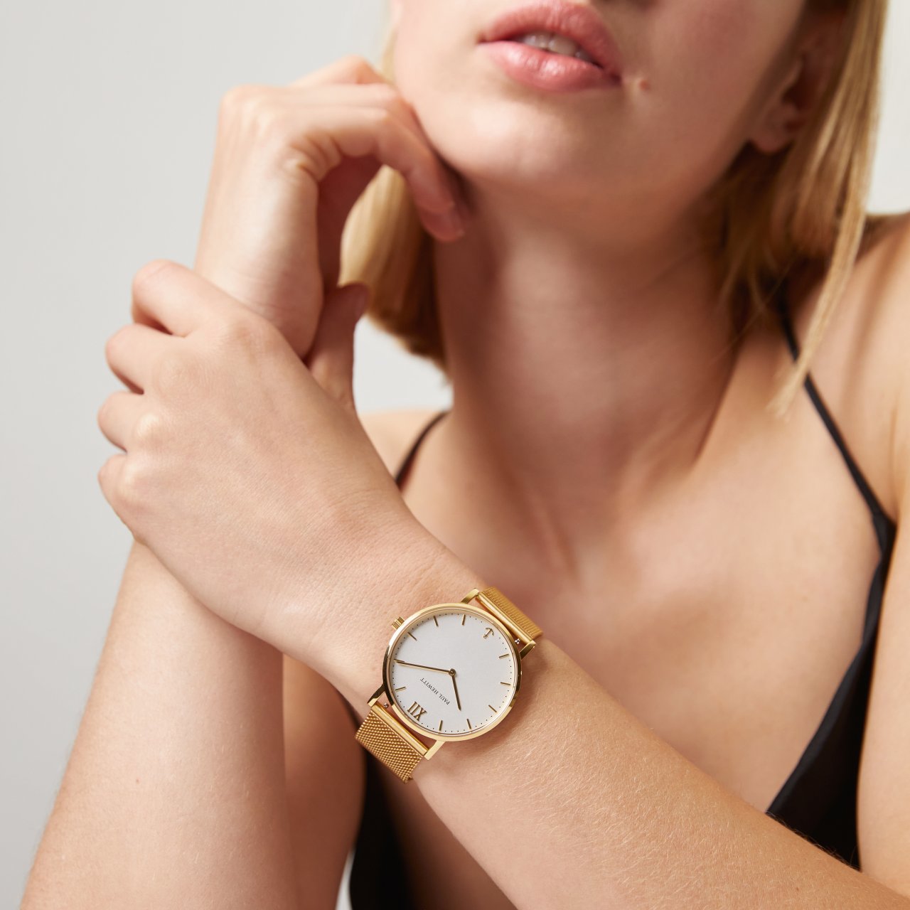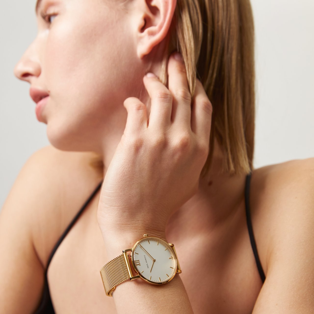 錶 帶:不鏽鋼電鍍金色米蘭錶帶
