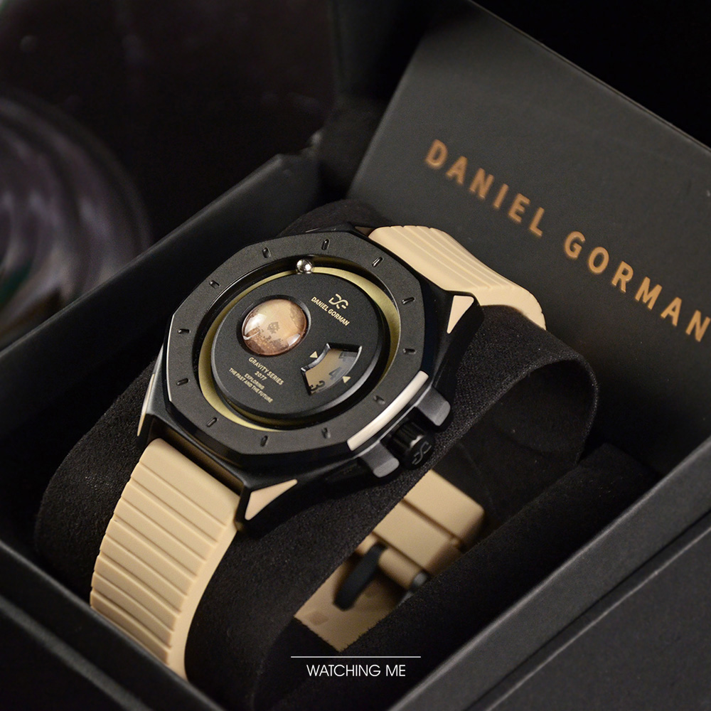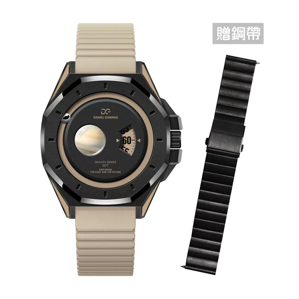 DANIEL GORMAN |萬有引力系列 星球造型 土星款 卡其色+黑框 卡其色矽膠錶帶 限量加贈黑色不鏽鋼錶帶 (DG0132KB)