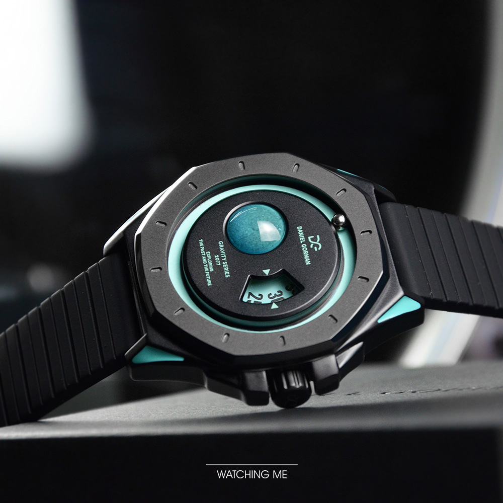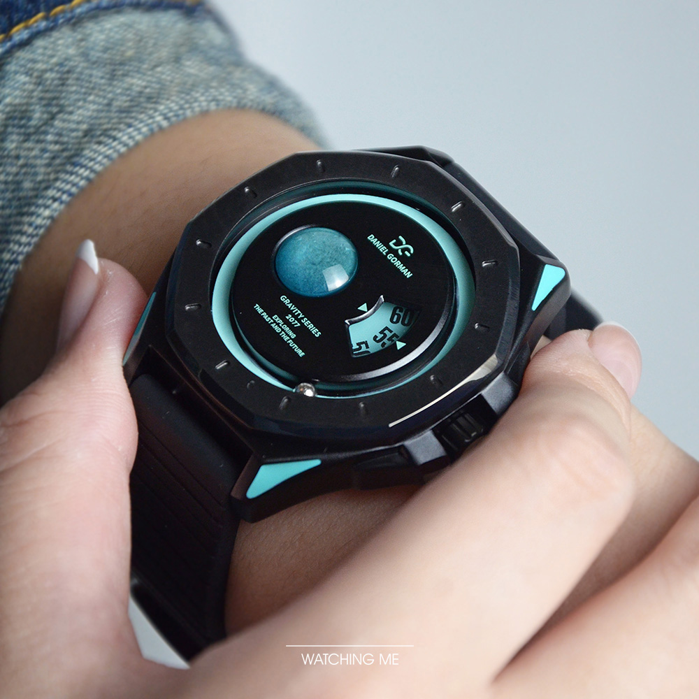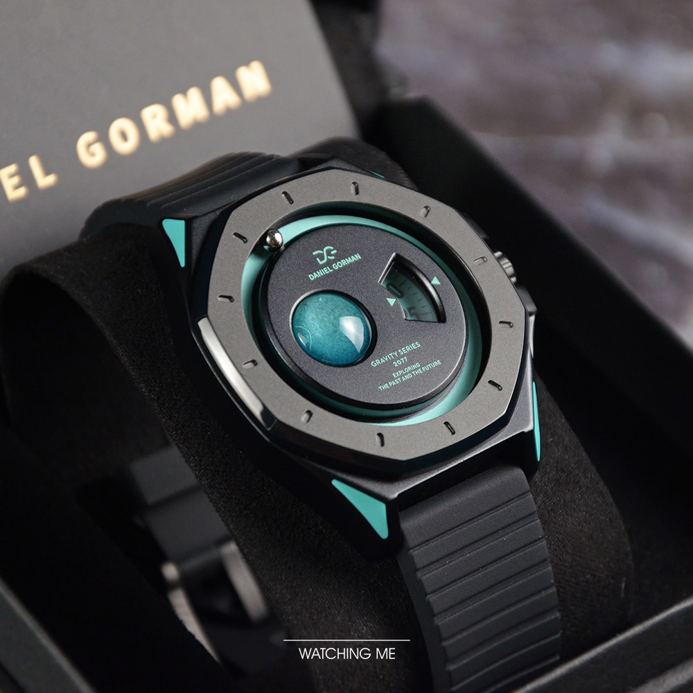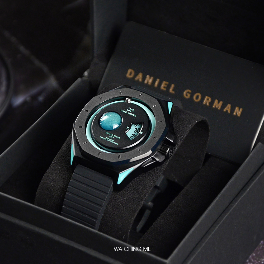 DANIEL GORMAN |萬有引力系列 星球造型 天王星款 水藍色+黑框 黑色矽膠錶帶 (DG0132KU)