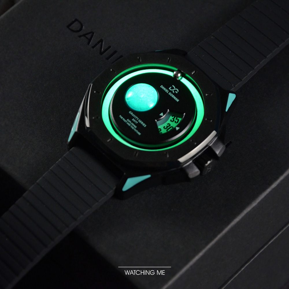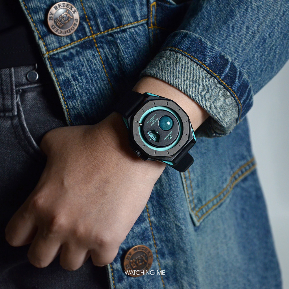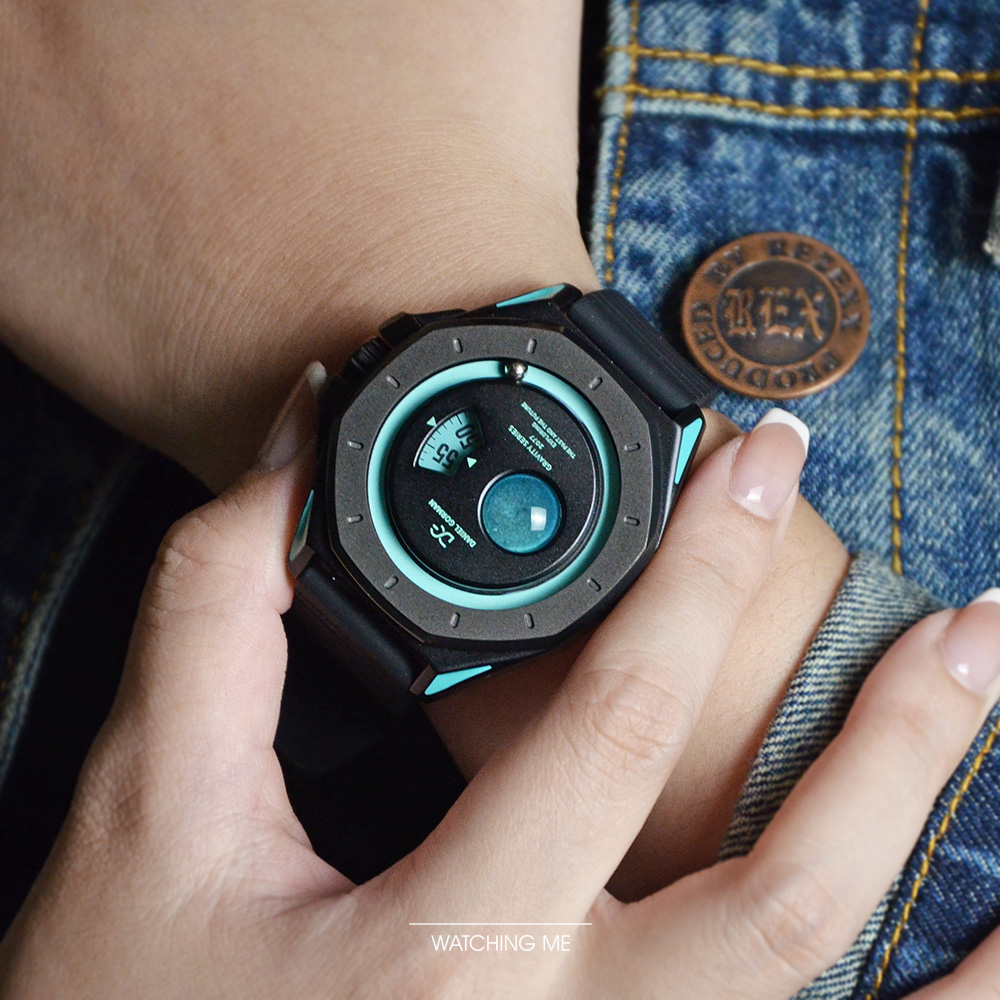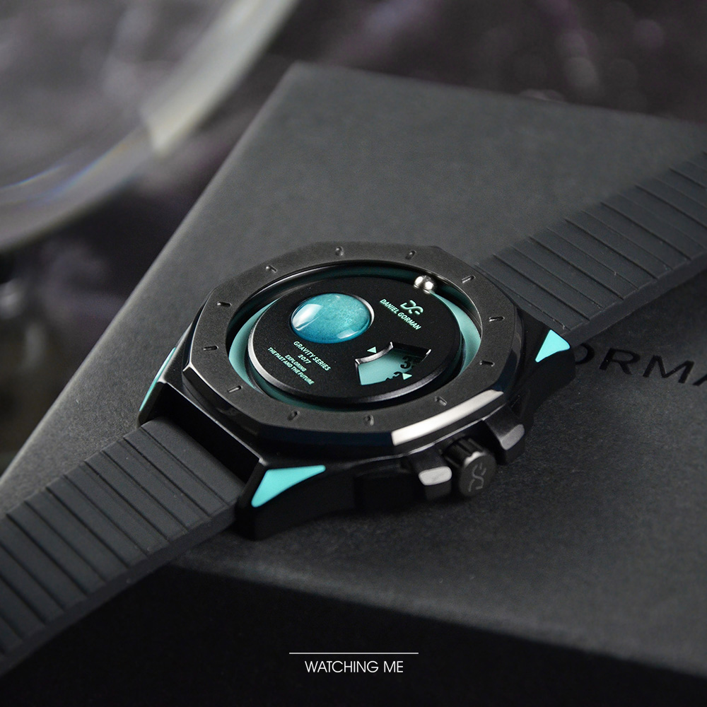 DANIEL GORMAN |萬有引力系列 星球造型 天王星款 水藍色+黑框 黑色矽膠錶帶 (DG0132KU)